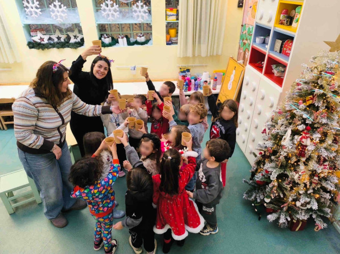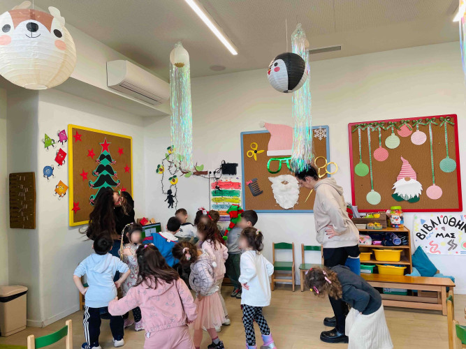 07 Ιανουαρίου 2026Στο χιονισμένο χωριό του Άγιου Βασίλη «ταξίδεψαν» τα προνηπιάκια μας, έπαιξαν χιονοπόλεμο, έλυσαν μαθηματικούς «γρίφους», έφτιαξαν κατασκευές και γνώρισαν έθιμα άλλων χωρών. Ποιο είναι το αληθινό νόημα των Χριστουγέννων; Τα παιδιά μας απόλαυσαν αυτή τη γιορτή της αγάπης φιλοτεχνώντας στολίδια με φωτογραφίες, ετοιμάζοντας ζεστό κακάο και ακούγοντας χριστουγεννιάτικες ιστορίες. Στην ημέρα των ξωτικών σχεδίασαν τους δικούς τους σκανδαλιάρικους βοηθούς, έψαλαν τα κάλαντα, συμμετείχαν σε «γλυκά» παιχνίδια και πήραν μέρος σε βιωματικές δραστηριότητες. Φυσικά δεν έλειπαν οι εκπλήξεις Αφού φόρεσαν τις πυτζάμες τους είδαν ταινίες και έκαναν «ζαχαρωτά όνειρα» γράφοντας το γράμμα τους στον Άγιο Βασίλη. Ευχόμαστε αυτές τις στιγμές να τις θυμούνται για πάντα με αγάπη.