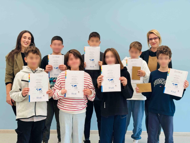 06 Νοεμβρίου 2025Με χαρά και υπερηφάνεια απονείμαμε σε μαθητές και μαθήτριες της Ε΄ και Στ’ τάξης, καθώς και σε αποφοίτους του Σχολείου μας, τα πιστοποιητικά γερμανικής γλώσσας επιπέδων Α1 και Α2, έπειτα από την επιτυχημένη πορεία τους στις εξετάσεις του Ινστιτούτου ÖSD.