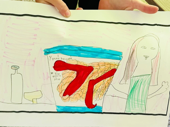 04 Νοεμβρίου 2025Οι μαθητές της Β΄ τάξης πήραν τον ρόλο των διαφημιστών και ανέλαβαν να ερευνήσουν την αγορά ώστε να μάθουν τα πάντα για τη σωστή προώθηση προϊόντων.Οι μικροί ερευνητές σε πρώτο στάδιο ξεκίνησαν να διαβάζουν τις εμπορικές συσκευασίες με σκοπό να σημειώσουν τα συστατικά που περιέχει το κάθε αγαθό. Σιγά σιγά άρχισαν να γνωρίζουν και να εξοικειώνονται με τους μηχανισμούς παραγωγής δημιουργικών ιδεών που έχουν ως στόχο να κεντρίσουν το ενδιαφέρον του καταναλωτή. Μετά πολλές συζητήσεις και στρατηγικές σχεδίασαν τη δικής τους διαφήμιση παρουσιάζοντας το προϊόν τους με χρώμα και φαντασία. Τα παιδιά αντιλήφθηκαν βιωματικά τι πρέπει να γνωρίζει ένας συνειδητοποιημένος και με κριτική σκέψη καταναλωτής.