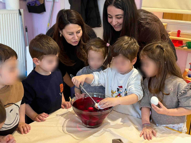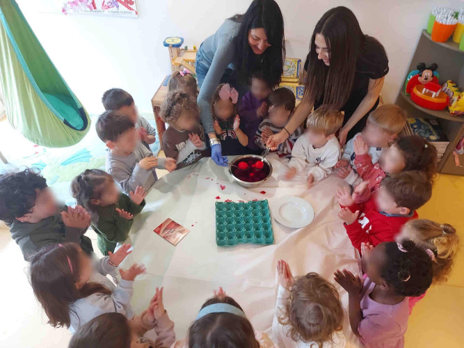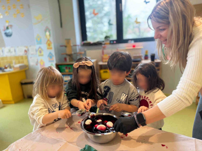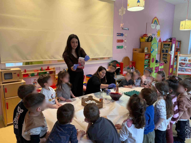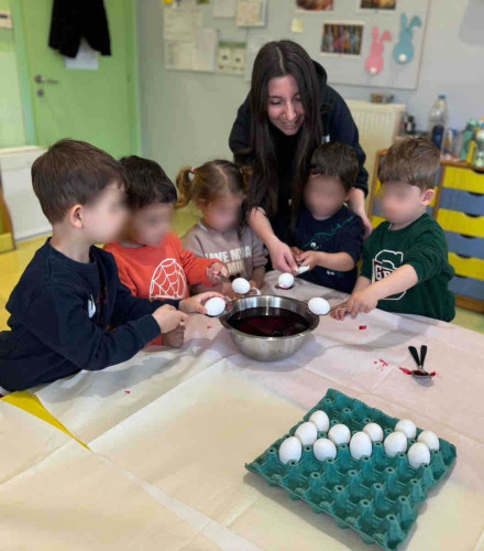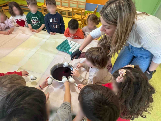 09 Απριλίου 2026Τα ήθη και τα έθιμα που ακολουθούμε την περίοδο του Πάσχα στον τόπο μας γνώρισαν οι μαθητές μας του Παιδικού Σταθμού «Πρότυπα 2-4» μέσα από φωτογραφικό υλικό και συμμετέχοντας σε βιωματικές δραστηριότητες. Αφού άκουσαν για τα πασχαλινά κάλαντα, τον στολισμό του επιταφίου αλλά και για τα παραδοσιακά εδέσματα των ημερών, τα παιδιά έβαψαν με τα χεράκια τους κόκκινα αυγά μαθαίνοντας για το τσούγκρισμά τους μετά το «Χριστός Ανέστη». Ακόμα, μεταξύ άλλων απόλαυσαν τις αφηγήσεις των παραμυθιών «Οι κότες δε λαλούν!» και «Ο φαντασμένος Λούης», ενώ εξάσκησαν τη λεπτή τους κινητικότητα με διαδραστικά παιχνίδια και πρωτότυπες κατασκευές. Με χαμόγελο και αγάπη τα μικρά μας σας εύχονται Καλό Πάσχα!
