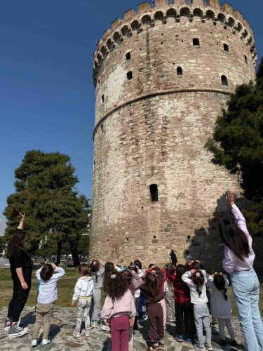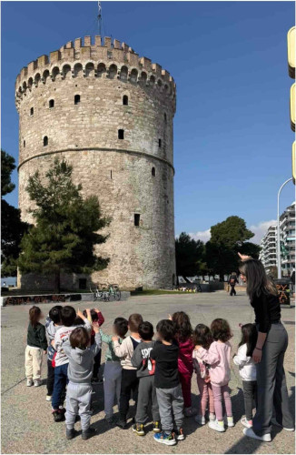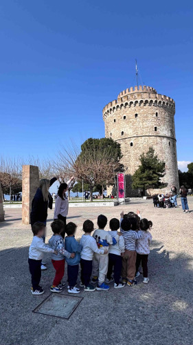 26 Μαρτίου 2026Στο πλαίσιο της θεματικής ενότητας «Μικρά βήματα, στη μεγάλη πόλη» οι μαθητές μας του Παιδικού Σταθμού «Πρότυπα 2-4» απόλαυσαν μια ξεχωριστή περιήγηση στην όμορφη Θεσσαλονίκη. Τα παιδιά ακολουθώντας μια ευχάριστη διαδρομή είδαν από κοντά τα σημαντικά αξιοθέατα της πόλης και άκουσαν την ιστορία τους. Ποιο είναι το παρελθόν των εμβληματικών μνημείων; Τα μικρά μας είχαν την ευκαιρία να έρθουν σε επαφή με τον πολιτισμό του τόπου μας και να βρουν απαντήσεις σε πολλά ερωτήματα. Ποιο είναι το πρώτο όνομα του Λευκού Πύργου; Πόσα μέτρα είναι ο πύργος του ΟΤΕ; Γιατί κατασκευάστηκε η Αψίδα του Γαλερίου; Από που πήρε το όνομα της η Ροτόντα; Πότε ξεκίνησε η οχύρωση της πόλης με τα κάστρα; Μαθαίνουμε την ιστορία της πόλης μας από τη «γέννησή» της και φανταζόμαστε τη Θεσσαλονίκη του μέλλοντος.