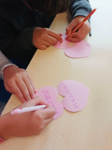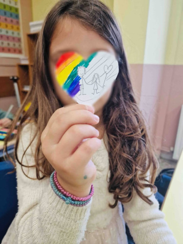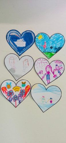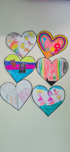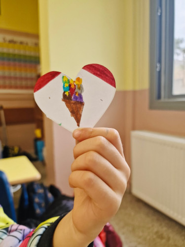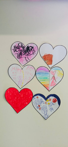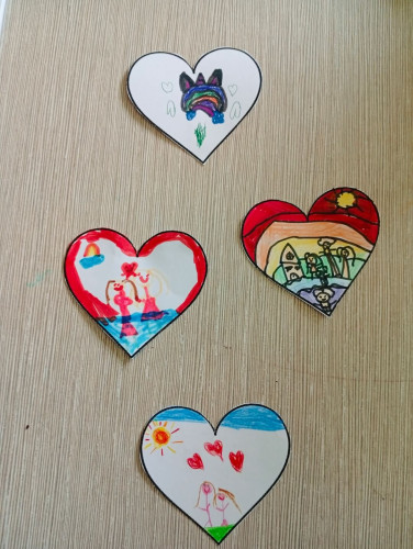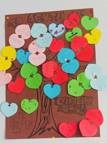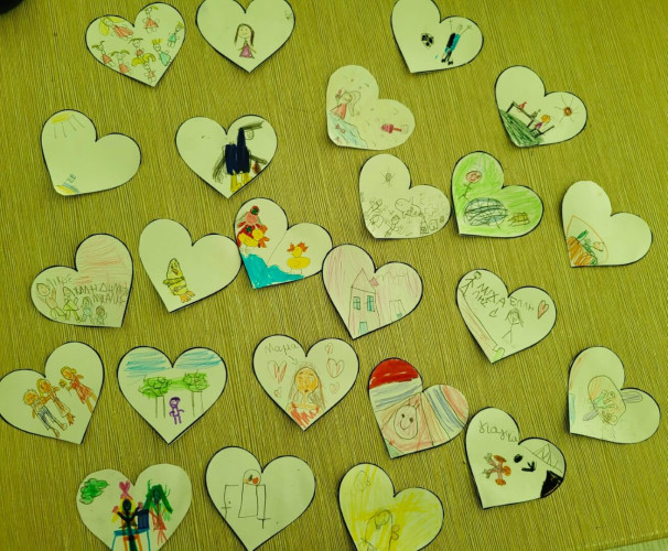 Οι μαθητές της Α΄τάξης γέμισαν το «κουτί της καρδιάς» με όμορφες αναμνήσεις και ευτυχισμένα πρόσωπα. Στη δραστηριότητα αυτή τα παιδιά έκοψαν καρδιές από λευκό χαρτόνι και ζωγράφισαν πάνω τους ό,τι τους κάνει να νιώθουν πραγματικά χαρούμενα: η οικογένεια, οι φίλοι, αγαπημένα αντικείμενα. Στη συνέχεια, όσοι το επιθυμούσαν παρουσίασαν τη ζωγραφιά τους στους συμμαθητές τους και εξήγησαν με λίγα λόγια γιατί έκαναν αυτή την επιλογή. Στο τέλος όλες οι καρδιές τοποθετήθηκαν στο «κουτί της καρδιάς μας», όπως ονομάστηκε και είναι πλέον σύμβολο χαράς και θετικών συναισθημάτων.