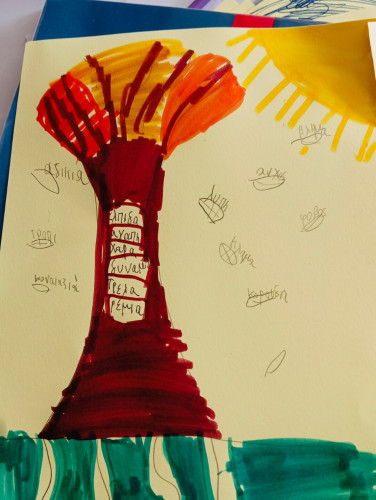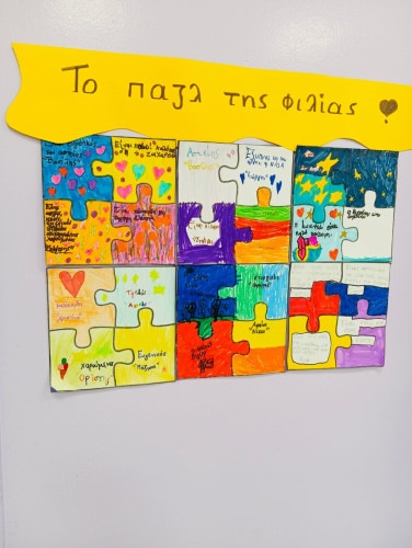 Οι μαθητές μας της Γ΄ τάξης πήραν μέρος σε πληθώρα δραστηριοτήτων με σκοπό την ευαισθητοποίηση σε θέματα ψυχικής ανθεκτικότητας, συναισθηματικής έκφρασης και επικοινωνίας. Οι δράσεις συνδέθηκαν διαθεματικά με τα μαθήματα της Γλώσσας, των Θρησκευτικών και των Εικαστικών. Αρχικά, παρακολούθησαν τα εκπαιδευτικά βίντεο «Κρυφά σημάδια», «Ένα διαφορετικό βλέμμα στον κόσμο» και «Frida’s story of courage» και συζήτησαν για τη δύναμη της ψυχής, τη διαφορετικότητα και την αντοχή στις δυσκολίες. Έπειτα, δημιούργησαν έργα εμπνευσμένα από «Το δέντρο της δύναμης», έφτιαξαν το «παζλ της φιλίας» και συνέταξαν το συμβόλαιο της τάξης με σύνθημα «Με σεβασμό και αγάπη ανθίζουμε όλοι». Ακόμα, έπαιξαν το Γελόμετρο», μαθαίνοντας τη σημασία των θετικών λέξεων και του σεβασμού στην επικοινωνία.