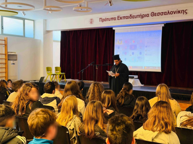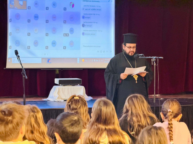 30 Ιανουαρίου 2026Στο Σχολείο μας είχαμε τη χαρά και την ευλογία να φιλοξενήσουμε τον πάτερα Θωμά από τον Ιερό Ναό Προφήτη Ηλία. Ο ιερέας μίλησε στους μαθητές μας για τους Τρεις Ιεράρχες που γιορτάζουν στις 30 Ιανουαρίου. Με απλά και ουσιαστικά λόγια εξήγησε την καθοριστική συμβολή των τριών φωστήρων στη διατήρηση της χριστιανικής πίστης και υπενθύμισε την ανιδιοτελή προσφορά τους στην κοινωνία. Ο Ιωάννης ο Χρυσόστομος, ο Βασίλειος ο Μέγας και ο Γρηγόριος ο Θεολόγος αποτελούν διαχρονικά τους φάρους της παιδείας, της μόρφωσης και της καλοσύνης, παραμένοντας επίκαιροι στο πέρασμα των αιώνων. Με τη φιλανθρωπία τους και με την πίστη τους προς τον Θεό και τον συνάνθρωπο να συμβαδίζουν γίνονται πρότυπα για τα νέα παιδιά. Όπως τόνισε και ο πάτερ Θωμάς κλείνοντας την ομιλία του «Χωρίς την αληθινή αγάπη καταστρέφεται η ενότητα μεταξύ των ανθρώπων. Κανείς δεν μπορεί να υπάρξει μόνος του, υπάρχουμε μαζί με τον Θεό και τον συνάνθρωπο».
