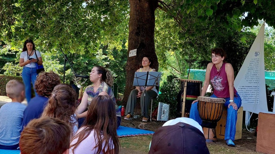 21 Ιουνίου 2022Τα παιδιά μας που συμμετέχουν στο English Summer Camp «The Wonders of Protypa» γιόρτασαν την Ευρωπαϊκή Ημέρα Μουσικής παίζοντας μουσικά όργανα με το ΚΡΟΥΣΤΟΦΩΝΟ-Εργαστήρι Κρουστών και τραγουδώντας μουσικές και τραγούδια απ’ όλες τις γωνιές του κόσμου. Βγάλαμε παπούτσια, καθίσαμε στο ειδικό στρώμα που είχε στηθεί κάτω απ’ το πελώριο πλάτανο της αυλής μας και υπό την σκιά του μάθαμε για τον κόσμο των κρουστών, για τους ήχους και τις μελωδίες τους, αλλά και για το σε ποιες χώρες επιλέγονται οι πιο γρήγοροι ή οι πιο αργοί σκοποί και γιατί. Το διασκεδάσαμε και φυσικά, αφήσαμε να μας συνεπάρει ο ρυθμός!