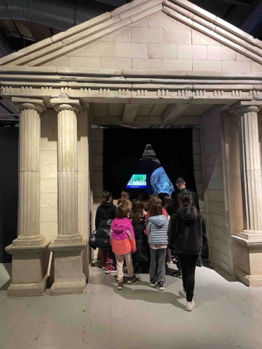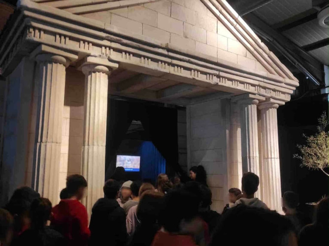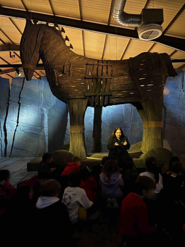 09 Δεκεμβρίου 2025Στο πλαίσιο του μαθήματος της ιστορίας οι μαθητές της Γ΄ και Δ΄ τάξης επισκέφθηκαν το διαδραστικό θεματικό πάρκο «Αρχαία Ελλάδα» στη ΔΕΘ και έκαναν ένα «ταξίδι» στο μακρινό παρελθόν. Από την αρχαία Αθήνα και τις Θερμοπύλες στην Σπάρτη βρέθηκαν στη Μακεδονία και την Τροία μαθαίνοντας τη σπουδαιότητα του αρχαίου ελληνικού πολιτισμού και της μυθολογίας. Στη συνέχεια, τα παιδιά θαύμασαν τα εντυπωσιακά αγάλματα θεών, μυθικών πλασμάτων και ηρώων της εποχής που «ζωντάνεψαν» μπροστά στα έκπληκτα μάτια τους. Με τη βοήθεια εφαρμογών ΑΙ είδαν αρχαίους φιλόσοφους να τους μιλούν για τη ζωή και τα επιτεύγματά τους.