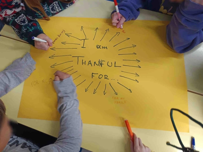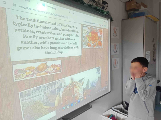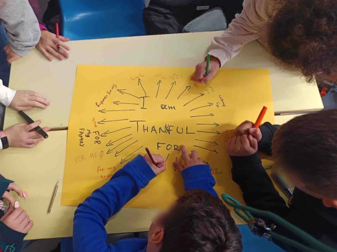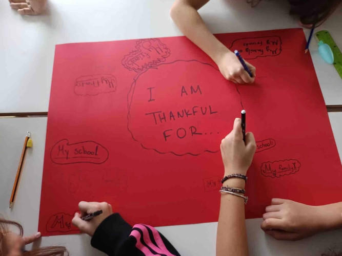 27 Νοεμβρίου 2025Γνωρίζετε ότι ο Αβραάμ Λίνκολν ήταν αυτός που το 1863 ανακήρυξε την ημέρα των Ευχαριστηριών εθνική γιορτή; Οι μαθητές μας της Ε΄ τάξης στο μάθημα των Αγγλικών γιόρτασαν σήμερα την ημέρα και έμαθαν πληροφορίες για την προέλευση και την ιστορία της. Μέσα από την οn-line ενότητας "Fun facts" έμαθαν για τα ήθη και τα έθιμα που ακολουθούν οι υπόλοιπες χώρες του εξωτερικού. Στη συνέχεια, σε ένα χαρτόνι με τίτλο “I am thankful for…” οι μαθητές έγραψαν λόγους για τους οποίους νιώθουν ευγνώμονες και ευχήθηκαν “Happy Thanksgiving!”