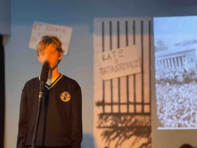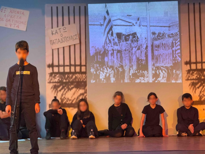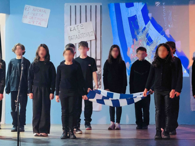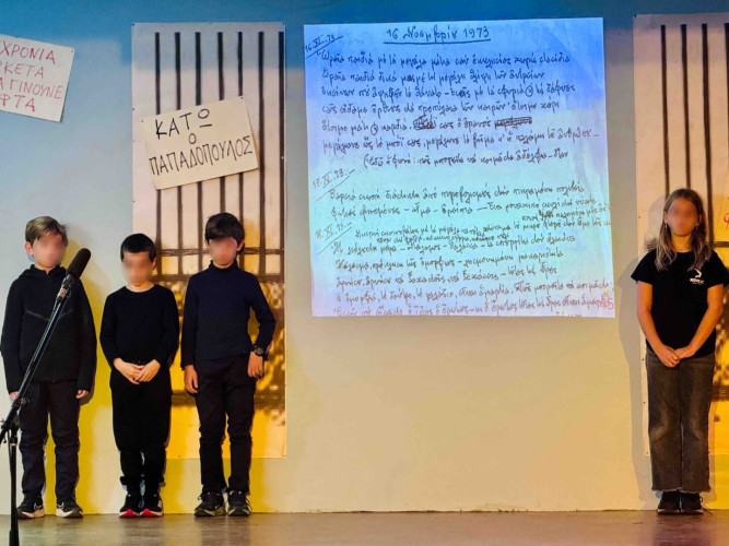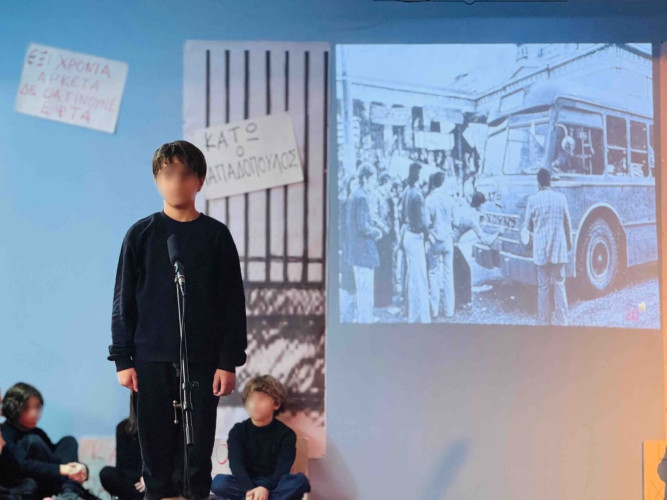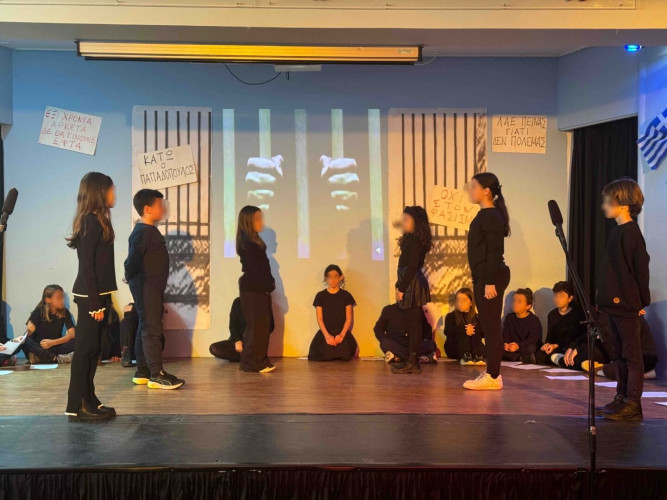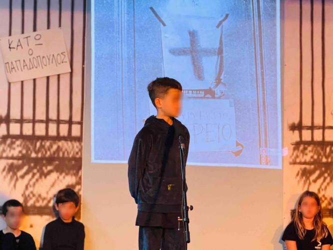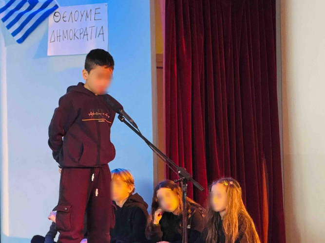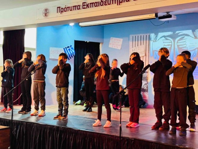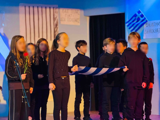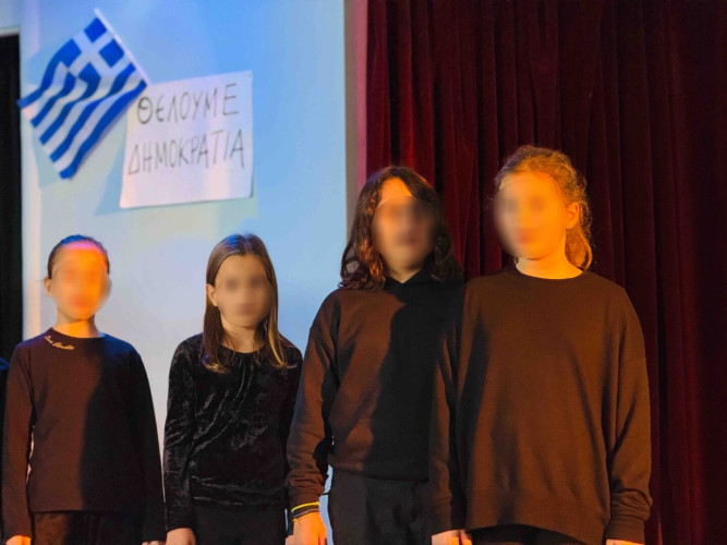 17 Νοεμβρίου 2025Σήμερα είναι η επέτειος μιας από τις πιο σημαντικές στιγμές της σύγχρονης ελληνικής ιστορίας, της εξέγερσης του Πολυτεχνείου στις 17 Νοεμβρίου. Οι μαθητές μας της Δ΄ τάξης σήκωσαν τα πανό τους και «φώναξαν» «Ψωμί – Παιδεία – Ελευθερία» (το κυρίαρχο σύνθημα των γεγονότων) τιμώντας τους φοιτητές που ύψωσαν το ανάστημα τους απέναντι στη δικτατορία. Τα παιδιά μας με τραγούδια, αφηγήσεις και ποιήματα αναβίωσαν εκείνες τις κρίσιμες ώρες μέσα και έξω από το Πολυτεχνείο το 1973. Η αντίσταση στην χούντα ήταν έρωτας για τη ζωή και τη δημοκρατία και με τους αγώνες των νέων ακούστηκε η ελπίδα ενός ολόκληρου λαού. Το Πολυτεχνείο ζει μέσα μας και είναι το σύμβολο για να μας υπενθυμίζει ότι χρειάζεται να φροντίζουμε και να υπερασπιζόμαστε τα ιδανικά μας.