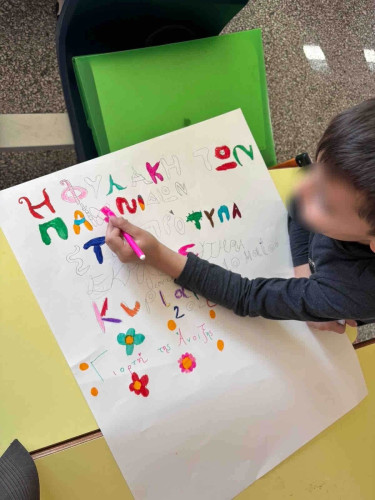 09 Φεβρουαρίου 2026Στο πλαίσιο των Εργαστηρίων Δεξιοτήτων με θέμα «Πάμε κόντρα στις οθόνες», οι μαθητές της Β΄τάξης εμπνεύστηκαν από το βιβλίο του Μάριου Μάζαρη και έγραψαν το δικό τους παραμύθι. «Η φυλακή των παιχνιδιών» ήταν ο τίτλος που έδωσαν στο συγγραφικό τους έργο, το οποίο στη συνέχεια εικονογραφήθηκε αποτυπώνοντας τη φαντασία των παιδιών σε ένα πραγματικό βιβλίο. Ακόμα, αξιοποιώντας τις γνώσεις που απέκτησαν στο μάθημα της Γλώσσας, εργάστηκαν χωρισμένα σε ομάδες και δημιούργησαν αφίσες για να παρουσιάσουν τα βιβλία τους. Με βιωματικό τρόπο έστειλαν το δικό τους μήνυμα για τη σωστή χρήση των οθονών και τη δύναμη του βιβλίου