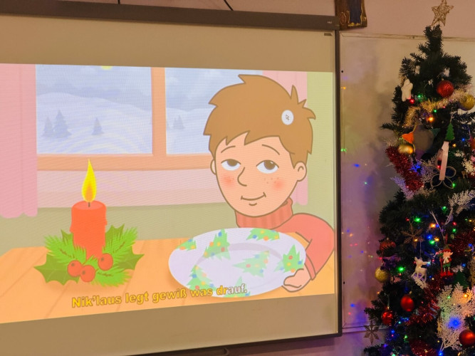 Κατά τη διάρκεια του μαθήματος παρακολουθώντας οπτικοακουστικό υλικό γνώρισαν τον βίο και το έργο του Sankt Nikolaus, τον δίκαιο και γενναιόδωρο επίσκοπο που τιμά ιδιαίτερα η γερμανική κουλτούρα. Στη συνέχεια, ανακάλυψαν επίσης τα βασικά χριστουγεννιάτικα έθιμα της Adventszeit: το Adventskranz (χριστουγεννιάτικο στεφάνι με κεριά για το μέτρημα των ημερών μέχρι τα χριστούγεννα), το Adventskalender, τις πολύχρωμες και μυρωδάτες Weihnachtsmärkte (χριστουγεννιάτικες αγορές) και το Weihnachtsbaum (χριστουγεννιάτικο δέντρο) και πήραν μέρος σε ένα διασκεδαστικό quiz.