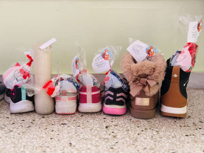 Πριν αρχίσει το μάθημα τα παιδιά, ακολουθώντας το γερμανικό έθιμο, άφησαν τα παπούτσια τους έξω από την τάξη. Όπως κάθε χρόνο, ο Nikolaus «πέρασε κρυφά» και τα γέμισε με γλυκά και μικρές λιχουδιές— μια γλυκιά επιβράβευση για την προσπάθεια, τη συνεργασία και την καλοσύνη που δείχνουν όλη τη διάρκεια της χρονιάς. - Alle unsere Kinder waren sehr brav!
