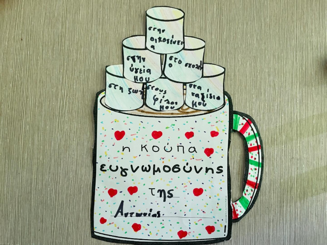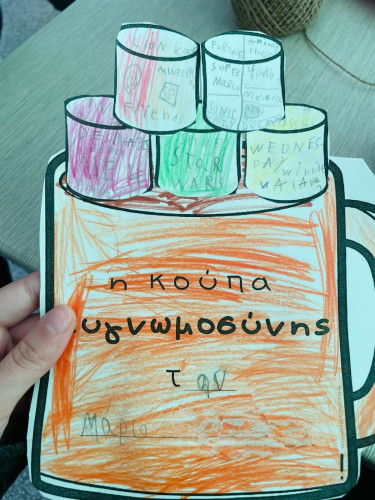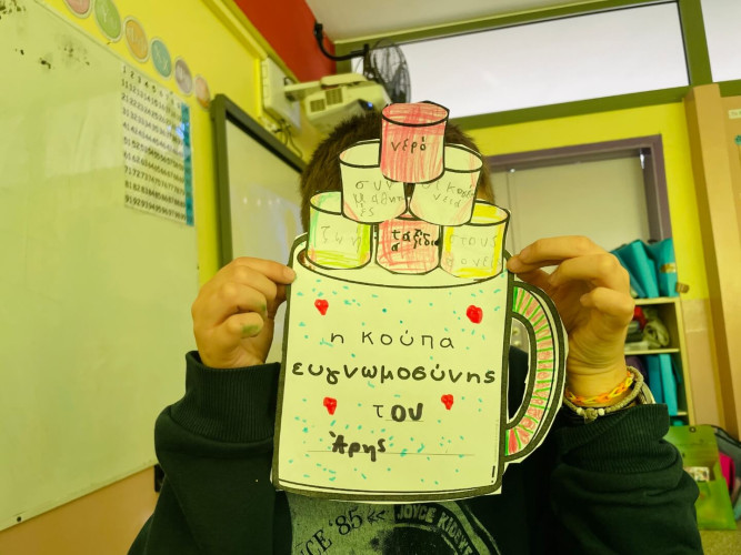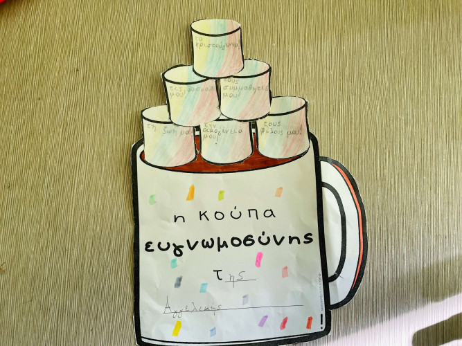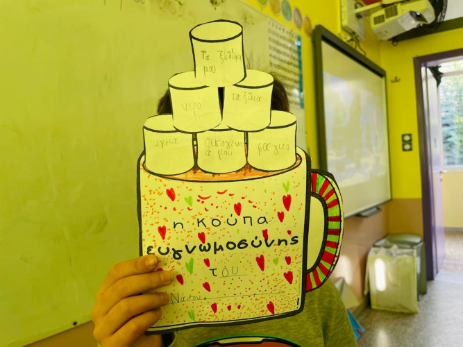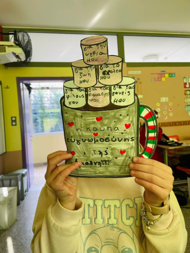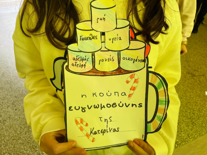 14 Ιανουαρίου 2026Τη μοναδική δική τους «κούπα της ευγνωμοσύνης» έφτιαξαν οι μαθητές μας της Β΄τάξης εκφράζοντας όσα τους έρχονται στο μυαλό για τη χρονιά που αφήσαμε πίσω μας. Μια «ζεστή σοκολάτα» γεμάτη λέξεις και συναισθήματα, στην οποία έγραψαν όλα εκείνα για τα οποία νιώθουν ευγνωμοσύνη: την οικογένεια, τους φίλους, την υγεία, την αγάπη και τις μικρές χαρές της καθημερινότητας. Βιωματικά έμαθαν τι σημαίνει ευγνωμοσύνη και είπαν ένα μεγάλο ευχαριστώ για όσα συχνά θεωρούμε δεδομένα, αλλά τελικά αν το σκεφτούμε για κάποιους δεν είναι. Γιατί οι γιορτές δεν είναι μόνο δώρα, αλλά και καρδιές γεμάτες αγάπη.