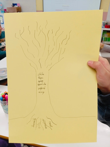 21 Οκτωβρίου 2025Οι μαθητές μας της Γ΄ τάξης πήραν μέρος σε πληθώρα δραστηριοτήτων με σκοπό την ευαισθητοποίηση σε θέματα ψυχικής ανθεκτικότητας, συναισθηματικής έκφρασης και επικοινωνίας. Οι δράσεις συνδέθηκαν διαθεματικά με τα μαθήματα της Γλώσσας, των Θρησκευτικών και των Εικαστικών. Αρχικά, παρακολούθησαν τα εκπαιδευτικά βίντεο «Κρυφά σημάδια», «Ένα διαφορετικό βλέμμα στον κόσμο» και «Frida’s story of courage» και συζήτησαν για τη δύναμη της ψυχής, τη διαφορετικότητα και την αντοχή στις δυσκολίες. Έπειτα, δημιούργησαν έργα εμπνευσμένα από «Το δέντρο της δύναμης», έφτιαξαν το «παζλ της φιλίας» και συνέταξαν το συμβόλαιο της τάξης με σύνθημα «Με σεβασμό και αγάπη ανθίζουμε όλοι». Ακόμα, έπαιξαν το Γελόμετρο», μαθαίνοντας τη σημασία των θετικών λέξεων και του σεβασμού στην επικοινωνία.