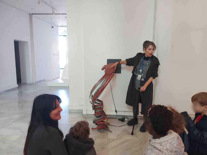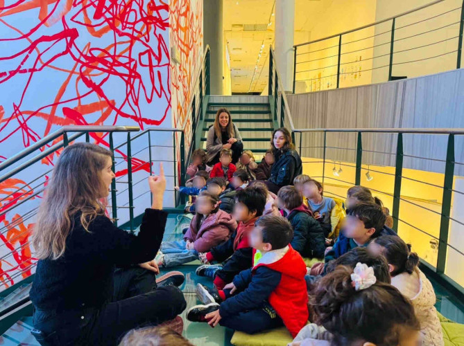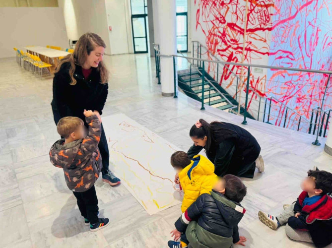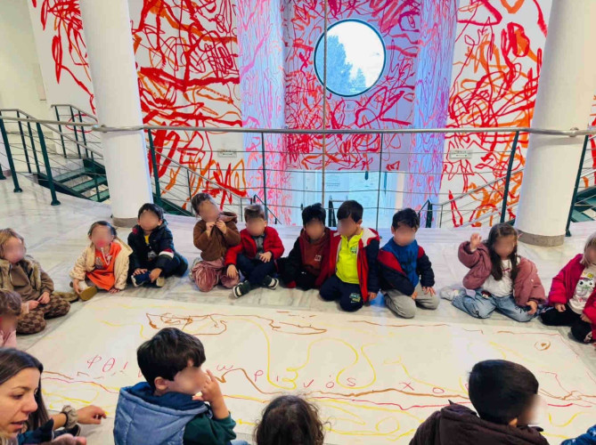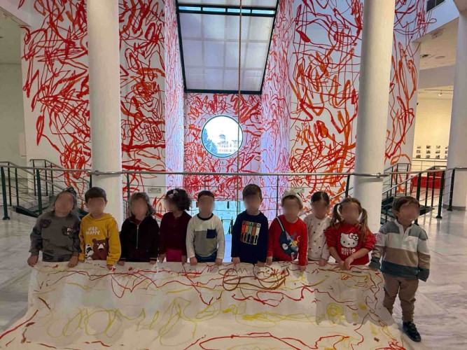 14 Νοεμβρίου 2025Τα μικρά μας του Παιδικού Σταθμού «Πρότυπα 2-4» επισκέφθηκαν το Μουσείο Σύγχρονης Τέχνης και εκεί παρακολούθησαν ένα εκπαιδευτικό εργαστήριο με αφορμή τον πίνακα του Otto Zitko «Χωρίς σβήστρα». Η εξερεύνηση ξεκίνησε και οι μαθητές μας αφού ξεναγήθηκαν στον χώρο παρατηρώντας κάθε λεπτομέρεια έφτασε η ώρα να φιλοτεχνήσουν. Πειραματίστηκαν με γραμμές και διαφορετικά υλικά και δημιούργησαν τα δικά τους έργα.