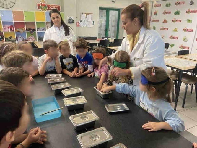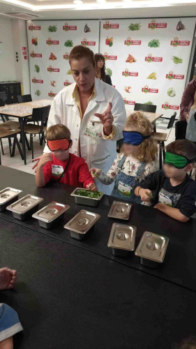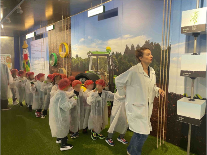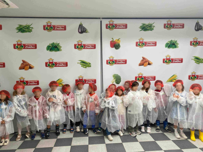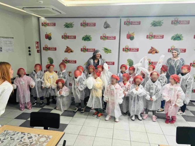 10 Οκτωβρίου 2025Στο πλαίσιο του προγράμματος «Κάνε ένα βήμα για την υγιεινή διατροφή» τα νηπιάκια μας επισκέφτηκαν τη μονάδα παραγωγής του «Μπάρμπα Στάθη» και έμαθαν για τα «μυστικά» των υγιεινών προϊόντων. Εξοπλισμένα με τα απαραίτητα: καλύμματα κεφαλής και ποδιές, τα παιδιά ξεναγήθηκαν στις εγκαταστάσεις του εργοστασίου και είδαν πώς οι εκλεκτοί καρποί από τη σπορά φτάνουν στο σπίτι μας. Γνώρισαν λοιπόν τα στάδια αγροτικής παραγωγής, πληροφορήθηκαν για τη θρεπτική αξία των λαχανικών και ενημερώθηκαν για το κρίσιμο ζήτημα της σπατάλης τροφίμων. Στις δοκιμές που έκαναν μύρισαν και γεύτηκαν τα γεμάτα βιταμίνες αγαθά και μέσω αυτής της βιωματικής εμπειρίας κατανόησαν τη σημασία της μεσογειακής διατροφής.