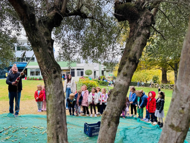 07 Νοεμβρίου 2025Το λάδι είναι ο «υγρός χρυσός» της διατροφής μας και οι μαθητές μας του Παιδικού Σταθμού «Πρότυπα 2-4», του Νηπιαγωγείου και του Δημοτικού για δεύτερη συνεχή χρονιά «έγιναν αγρότες» για να μαζέψουν τους καρπούς από τον ελαιώνα μας. Αφού είδαν τις ελιές να τινάζονται από τα δέντρα με μεράκι και αγάπη, τα παιδιά μας τις μάζεψαν πολύ προσεκτικά από τα ελαιόπανα. Τα τελάρα γέμισαν και είναι έτοιμα να μεταφερθούν στο ελαιοτριβείο για να μας χαρίσουν το δικό μας αγνό λάδι που θα διατεθεί προς πώληση στο 30ο Χριστουγεννιάτικο Φιλανθρωπικό Bazaar του Σχολείου μας!