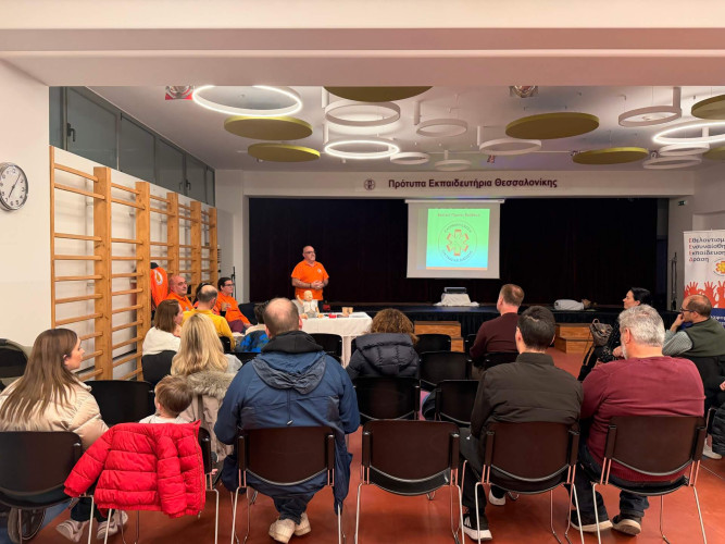 30 Μαρτίου 2026Στο πλαίσιο των Απογευματινών Συναντήσεων γονέων «Μεγαλώνοντας μαζί με τα παιδιά μας» πραγματοποιήθηκαν στο Σχολείο μας δύο ενημερωτικά σεμινάρια για τις πρώτες βοήθειες με τίτλο «Κι αν σου τύχει;». Στο α΄μέρος ο Αθανάσιος Κοτσαμπασίδης, Διασώστης-Πλήρωμα ασθενοφόρου, Εκπαιδευτής Πρώτων Βοηθειών, Υπεύθυνος Εκπαίδευσης Πρώτων Βοηθειών Ελληνικής Ένωσης Έρευνας και Διάσωσης ανέλυσε τα «βήματα» που μπορούμε να ακολουθήσουμε για να βοηθήσουμε έναν συνάνθρωπό μας μέχρι να έρθει ιατρική βοήθεια. Με διαδραστικό τρόπο εξήγησε πώς κάνουμε ΚΑΡΠΑ και έδειξε ποια είναι η θέση ανάνηψης σε περίπτωση ατυχήματος ή ξαφνικής ασθένειας. Στο β΄μέρος ενημέρωσε για το πώς αντιμετωπίζουμε προβλήματα όπως: απώλεια αισθήσεων, πνιγμονή, αιμοραγίες-ρινοραγία, εγκαύματα, τσιμπήματα, έμφραγμα, εγκεφαλικό και επιληπτική κρίση.