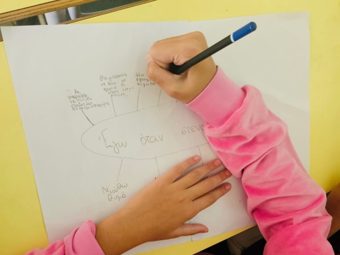 21 Οκτωβρίου 2025Οι μαθητές μας της Ε΄τάξης χωρίστηκαν σε τέσσερις ομάδες και η κάθε ομάδα ζωγράφισε τις σκέψεις που κάνει ένας άνθρωπος αναλόγα με τα συναισθήματα που αισθάνεται. Η 1η ομάδα ζωγράφισε «τα συναισθήματα του θυμού και της οργής» και επεξεργάστηκε τι νιώθουν, τι κάνουν και τι θα μπορούσαν να κάνουν οι άνθρωποι όταν θυμώνουν... Η 2η ομάδα έγραψε κάποιες «άσχημες σκέψεις» που έρχονται στο μυαλό μας μερικές στιγμές τις οποίες στη συνέχεια αντικατέστησε με ευχάριστους λογισμούς. Η 3η ομάδα σχεδίασε κύκλους και οι μαθητές έγραψαν τι νιώθουν όταν αισθάνονται αδύναμοι και η 4η ομάδα σχεδίασε χαρούμενες φατσούλες εκφράζοντας την αισιοδοξία. Τα παιδιά μας ακόμη επικεντρώθηκαν στον έλεγχο του θυμού και στην ενίσχυση της θετικής σκέψης εστιάζοντας στην αισιοδοξία και στον αυτοέλεγχο. Μέσα από τις δημιουργίες τους εκφράστηκαν ελεύθερα και απέδωσαν με το δικό τους μοναδικό τρόπο τα συναισθήματα και τις σκέψεις τους.