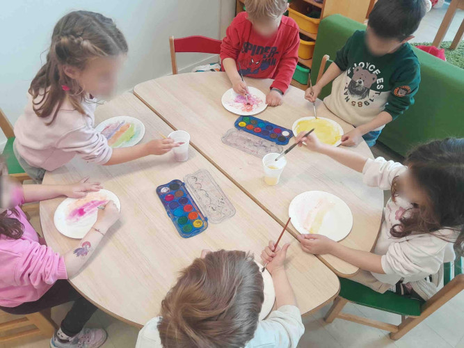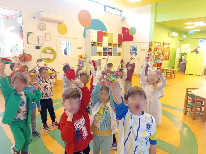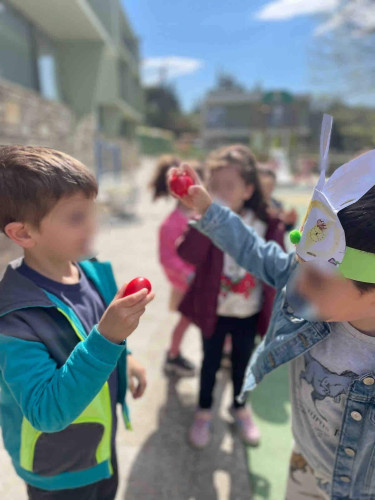 22 Απριλίου 2026Οι μαθητές μας του Νηπιαγωγείου κατά τη διάρκεια των διακοπών συμμετείχαν σε ένα πρόγραμμα δημιουργική απασχόλησης στο Σχολείο μας με ποικίλες δραστηριότητες. Μέσα σ’ ένα γιορτινό κλίμα τα παιδιά μας έμαθαν για το Πάσχα και έφτιαξαν με τα χεράκια τους ξεχωριστές κατασκευές εμνευσμένες από τα ήθη και τα έθιμα των ημερών. Ετοίμασαν ένα πρωτότυπο στεφάνι με τα χρωματιστά χάρτινα αβγά που ζωγράφισαν, φιλοτέχνησαν τα δικά τους καλαθάκια και έπλασαν αβγά με αλατόζυμη. Αφού φόρεσαν τα αυτάκια λαγού, σχεδίασαν ταΐστρες πουλιών με ανακυκλώσιμα υλικά, γνώρισαν τα λουλουδάκια της ανοιξιάτικης αυλή μας και με μεράκι φύτεψαν τα μαρουλάκια τους. Αυτή η συναρπαστική περιπέτεια ολοκληρώθηκε με ένα κυνήγι θησαυρού στον κήπο μας όπου τα παιδιά είχαν ως αποστολή να ανακαλύψουν τα κρυμμένα κόκκινα αβγά.