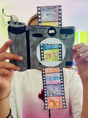 29 Οκτωβρίου 2025Τις ηρωικές στιγμές της ελληνικής ιστορίας γνώρισαν οι μαθητές μας της Γ΄ τάξης με αφορμή την εθνική επέτειο της 28ης Οκτωβρίου μέσα από ποικίλες δραστηριότητες. Tο ταξίδι ξεκίνησε από τη Θεσσαλονίκη, μαθαίνοντας για την 26η Οκτωβρίου, ημέρα της απελευθέρωσης της πόλης μας, και για τον Άγιο Δημήτριο, τον πολιούχο της. Πώς ένιωσαν οι Έλληνες τότε, όταν άκουσαν το χαρμόσυνο μήνυμα της λευτεριάς; Στη συνέχεια, τα παιδιά άκουσαν για τα γεγονότα του 1940, συζήτησαν για τους αγωνιστές που αντιστάθηκαν υπέρ του μεγάλου «Όχι» και εξέφρασαν τη συγκίνησή τους γράφοντας ένα γράμμα ευγνωμοσύνης σε έναν πολεμιστή της εποχής. Με λόγια απλά αλλά γεμάτα συναίσθημα, ευχαρίστησαν όσους πάλεψαν για την ελευθερία και την ειρήνη. Αφού έφτιαξαν τη δική τους κάμερα με κινούμενο φιλμ, πρόβαλαν μέσα από τις ζωγραφιές τους μικρές σκηνές από τα χρόνια του πολέμου, της ειρήνης και της ελευθερίας