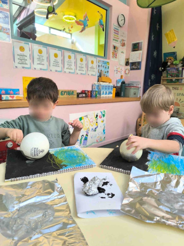 30 Ιανουαρίου 2026Από τη Δευτέρα 19 έως την Παρασκευή 30 Ιανουαρίου το νηπιαγωγείο μας μετατράπηκε σε διαστημικό σταθμό και οι μαθητές μας έγιναν μικροί αστροναύτες! Το γαλαξιακό «ταξίδι» ξεκίνησε και τα προνηπιάκια μας γνώρισαν το ηλιακό σύστημα, συζήτησαν για την τροχιά των πλανητών και εντόπισαν τη θέση της γης. Συμμετέχοντας σε ομαδικές δραστηριότητες σχημάτισαν λέξεις σχετικές με το διάστημα, έπαιξαν ψηφιακά παιχνίδια στον διαδραστικό πίνακα και συνεργάστηκαν με σκοπό να φτιάξουν μια εντυπωσιακή μακέτα του ηλιακού συστήματος. Ακόμα, ζωγράφισαν, πειραματίστηκαν με υλικά, δημιούργησαν καλειδοσκόπια και συμμετείχαν σε messy play, ανακαλύπτοντας την ιστορία του διαστήματος με όλες τους τις αισθήσεις.