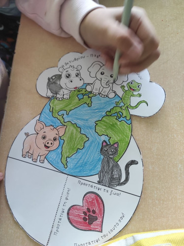 09 Οκτωβρίου 2025Τα ζώα είναι οι καλύτεροι φίλοι μας και μας κρατούν συντροφιά για μια ζωή. Με αφορμή την Παγκόσμια Ημέρα των Ζώων στις 4 Οκτωβρίου οι μαθητές μας της Γ΄ τάξης συζήτησαν για τα δικαιώματά των έμβιων συγκατοίκων μας στον πλανήτη και πληροφορήθηκαν πόσο σημαντικό είναι να τους συμπεριφερόμαστε με τρυφερότητα, στοργή και σεβασμό. Μίλησαν για τους τρόπους με τους οποίους μπορούμε να δείχνουμε φροντίδα σε όλα τα ζώα, με σκοπό να επιτευχθεί η καλύτερη διαβίωσή τους, είτε είναι κατοικίδια είτε ζουν ελεύθερα στη φύση. Ακόμα, ενημερώθηκαν πως η υπευθυνότητα είναι ένα από τα απαραίτητα χαρακτηριστικά που θα πρέπει να έχουμε όταν αποφασίσουμε να υιοθετήσουμε ένα ζωάκι. Στο τέλος, έφτιαξαν με ενθουσιασμό τη δική τους κατασκευή εκφράζοντας την αγάπη και την ευαισθησία τους.