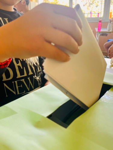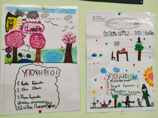 19 Νοεμβρίου 2025Στο πλαίσιο του μαθήματος της Μελέτης Περιβάλλοντος οι μαθητές μας της Γ΄ τάξης έμαθαν και στη συνέχεια ακολούθησαν βήμα προς βήμα την εκλογική διαδικασία. Αφού ετοίμασαν τους εκλογικούς καταλόγους και τα ψηφοδέλτια ορίστηκε εφορευτική επιτροπή και στήθηκε η κάλπη. Οι συνδυασμοί ολοκληρώθηκαν, οι αφίσες τυπώθηκαν και οι υποψήφιοι είναι έτοιμοι να εκφωνήσουν τους προεκλογικούς λόγους που έγραψαν. Με βιωματικό τρόπο τα παιδιά κατανόησαν πώς λειτουργεί η ψηφοφορία και γιατί είναι τόσο σημαντική η συμμετοχή όλων μας στις αποφάσεις μιας ομάδας. Φυσικά τηρήθηκε το απόρρητο της ψήφου.