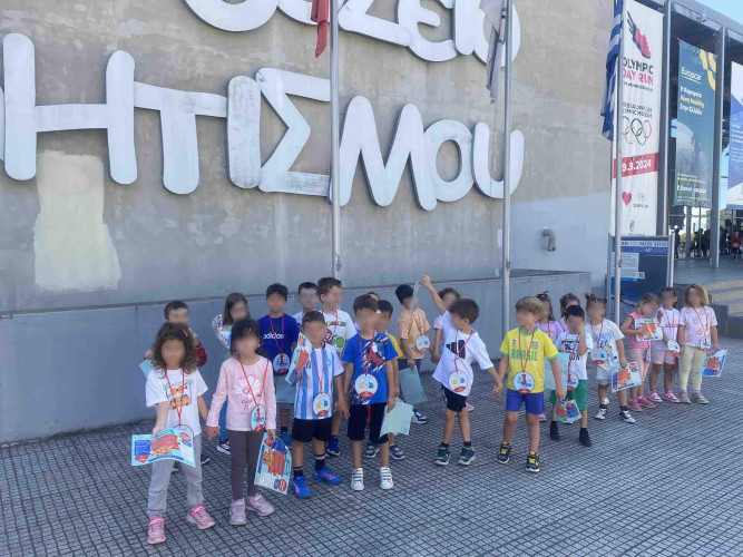 29 Σεπτεμβρίου 2025Ποια Ολυμπιακή δάδα μοιάζει με σπαθί των Σαμουράι; Ποια λαμπαδηδρομία ακολούθησε το ταξίδι του Κολόμβου; Ποια μασκότ μάς αφηγείται λαϊκά παραμύθια; Αυτά και ακόμα περισσότερα ενδιαφέροντα ερωτήματα κλήθηκαν να λύσουν τα νηπιάκια μας στο Ολυμπιακό Μουσείο Θεσσαλονίκης. Στο πλαίσιο της Ευρωπαϊκής Ημέρας Σχολικού Αθλητισμού που γιορτάσαμε την Παρασκευή 26 Σεπτεμβρίου οι μαθητές μας κατά τη διάρκεια της εκπαιδευτικής τους επίσκεψης παρακολούθησαν το πρόγραμμα «Σύγχρονοι Ολυμπιακοί Αγώνες» και είχαν την ευκαιρία να ακούσουν ιστορίες με τις σημαντικές στιγμές κορυφαίων αθλητών. Μέσα από τη συμμετοχή τους σε μουσικοκινητικές δραστηριότητες γνώρισαν τα ολυμπιακά αθλήματα και έμαθαν πως η ειρήνη, ο σεβασμός και το «ευ αγωνίζεσθαι» είναι κάποιες από τις διαχρονικές αξίες της ολυμπιακής παιδείας.