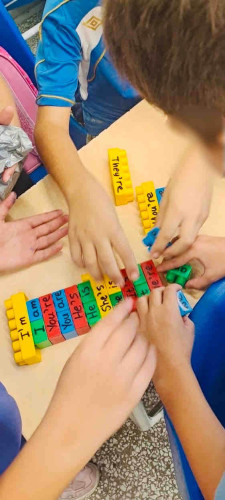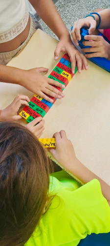 30 Σεπτεμβρίου 2025Η επανάληψη γίνεται διασκεδαστική και οι μαθητές μας της Γ΄τάξης του τμήματος των Αγγλικών έμαθαν γραμματική παίζοντας. Στη δραστηριότητα που πήραν μέρος τα παιδιά χωρίστηκαν σε ομάδες και έκαναν επανάληψη στο ρήμα “be”. Ο πύργος από τα τουβλάκια άρχισε να χτίζεται γρήγορα και οι μορφές του ρήματος μπήκαν στη σωστή σειρά.