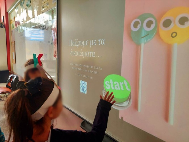 Τα τριτάκια μας δεν έμειναν στα λόγια. Με τη βοήθεια της δασκάλας τους δημιούργησαν σε κάθε τάξη το δικό τους «τηλεπαιχνίδι» με απλές, αλλά ουσιαστικές ερωταπαντήσεις για τα δικαιώματα των παιδιών.