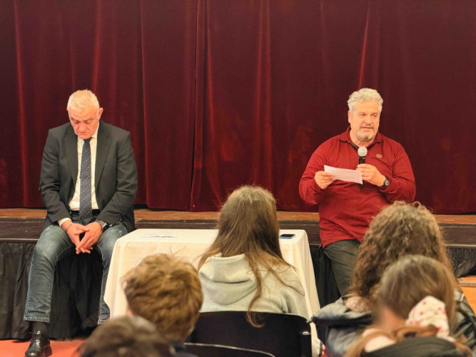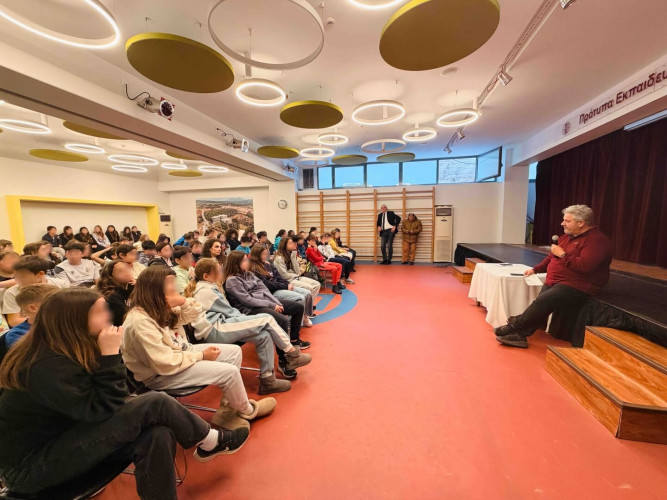 09 Φεβρουαρίου 2026Τη Δευτέρα 9 Φεβρουαρίου, με αφορμή την Παγκόσμια Ημέρα Ελληνικής Γλώσσας οι μαθητές μας παρακολούθησαν στο Σχολείο μας ενημερωτική ομιλία. Δημοκρατία, φιλοσοφία, ιστορία, λογική είναι μόνο κάποιες από τις αμέτρητες λέξεις που η μοναδικότητα τους βρίσκεται στην ελληνική γλώσσα. Τα παιδιά μέσα από τη συζήτηση που έκαναν με τον διευθυντή του δημοτικού, Στέργιο Καλφόπουλο και τον δάσκαλο, Χρήστο Κιοσσέ είχαν την ευκαιρία να αναγνωρίσουν τη σημασία τη διαχρονικότητά της. πως έχουμε χρέος να προστατεύσουμε τη γλώσσα μας καθώς είναι κομμάτι του πολιτισμού μας.