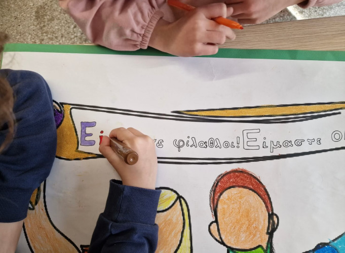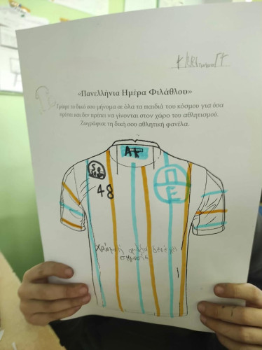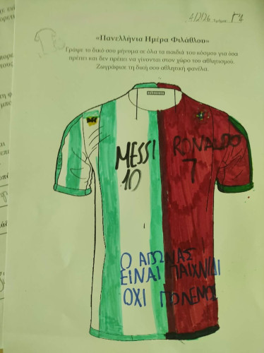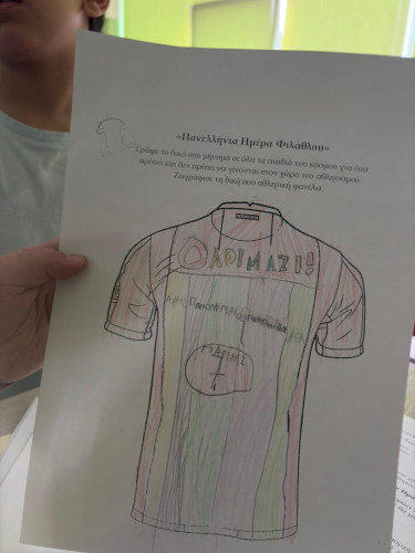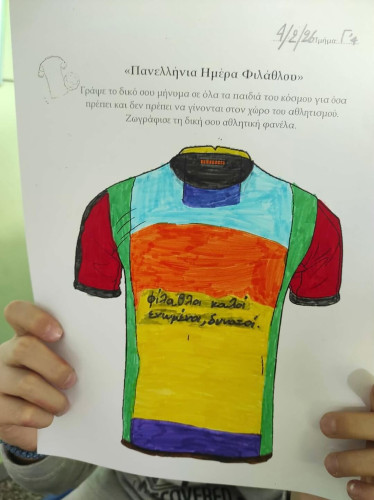 04 Φεβρουαρίου 2026Με αφορμή την Πανελλήνια Ημέρα Φιλάθλου οι μαθητές του Σχολείου μας συζήτησαν για την αποδοχή απέναντι σε όσους υποστηρίζουν μια διαφορετική ομάδα από τη δική μας. Την Τετάρτη 4 Φεβρουαρίου τα παιδιά συμμετείχαν σε ομαδικές δραστηριότητες σχεδιάζοντας δημιουργικές κατασκευές έχοντας ως σύνθημα «Η καρδιά του αθλητισμού είσαι ΕΣΥ-καμία φανέλα πάνω από τη ΖΩΗ». Ζωγράφισαν, χρωμάτισαν και έστειλαν το δικό τους μήνυμα για την προώθηση του φίλαθλου πνεύματος. Όλοι μαζί «φώναξαν» «ΟΧΙ στη βία – ΝΑΙ στον αθλητισμό! ΜΑΖΙ μπορούμε να αλλάξουμε τον κόσμο!»
