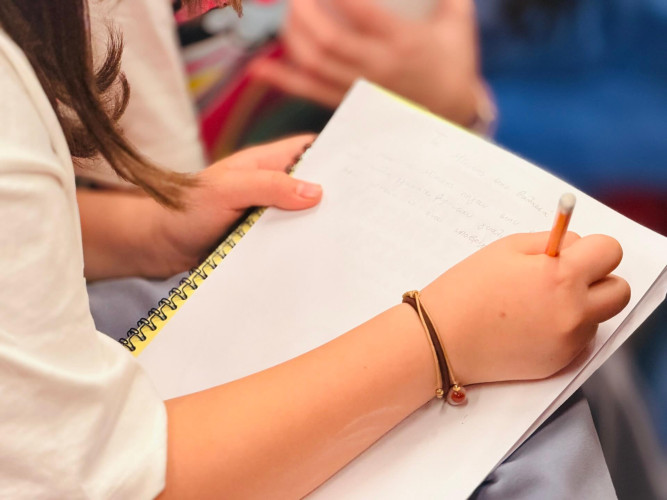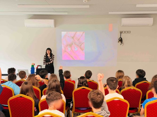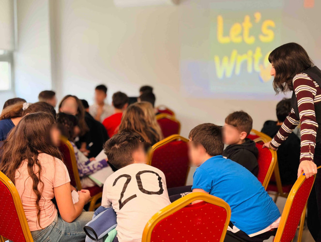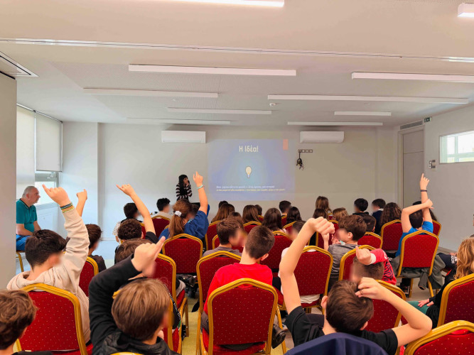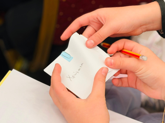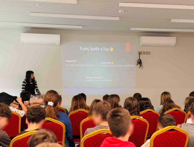 02 Απριλίου 2026Το ξέρετε ότι ο Hans Christian Andersen έγραψε πάνω από 150 παραμύθια τα οποία μεταφράστηκαν σε περισσότερες από 125 γλώσσες; Με αφορμή την Παγκόσμια Ημέρα Παιδικού Βιβλίου υποδεχθήκαμε στο Σχολείο μας τη Γιώτα Παπαδοπούλου, συγγραφέα του παραμυθιού «Η ποδιά του Τομ», η οποία έφερε σε επαφή τους μαθητές της Ε΄τάξης με τον «κόσμο» της συγγραφής. Τι σας έρχεται στο μυαλό όταν βλέπετε ένα κοχύλι; Τα παιδιά εκφράστηκαν ελεύθερα συμμετέχοντας σε ένα διαδραστικό παιχνίδι στο οποίο είχαν ως αποστολή να ανακαλύψουν ποιος τίτλος παραμυθιού «κρύβεται» πίσω από την κάθε φωτογραφία. Στη συνέχεια, συζήτησαν για τον σχεδιασμό ενός παραμυθιού, όπου εκεί το χωρίζουμε σε τρία μέρη: εισαγωγή, κυρίως διήγηση, τέλος. Αφού κατανόησαν ότι όλα ξεκινούν από μια ιδέα, ήρθε η ώρα της έμπνευσης. Χρησιμοποιώντας τις λέξεις-κλειδιά που τους δόθηκαν έγραψαν τις δικές τους πρωτότυπες ιστορίες καλλιεργώντας τη φαντασία και τη δημιουργική τους σκέψη.