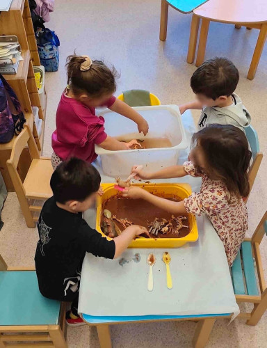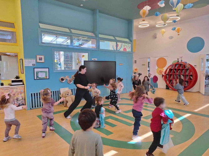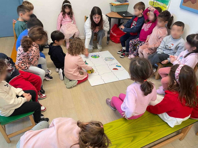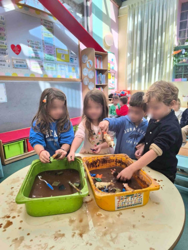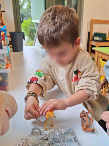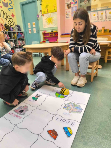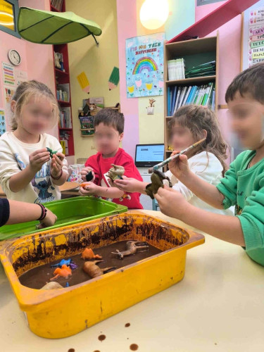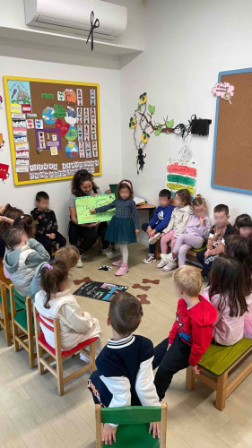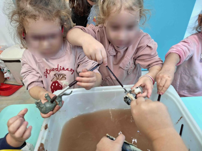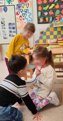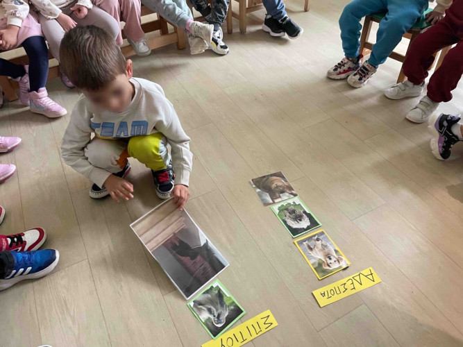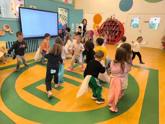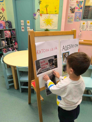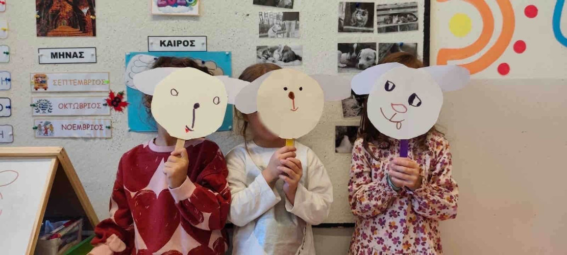 16 Οκτωβρίου 2025Τα προνηπιάκια μας στο πλαίσιο της ενότητας «Νοιαζόμαστε για τα ζώα. Φροντίζουμε τα αδέσποτα» συζήτησαν στην τάξη για τις ανάγκες που έχουν και τα προβλήματα που αντιμετωπίζουν στην καθημερινότητά τους τα ζωάκια συντροφιάς. Στη συνέχεια, τα παιδιά μας πήραν μέρος σε παιχνίδια μίμησης ζώων βάζοντας μαντίλια για ουρές και το καθένα φρόντισε να προσέχει τη δική του. Ακόμα, στη θεατρική αγωγή διαδραμάτισαν σωστές και λανθασμένες συμπεριφορές απέναντι στα ζώα καλλιεργώντας με αυτόν τον τρόπο την ενσυναίσθησή τους. Και ήρθε η ώρα να «σώσουν» τα «ζωάκια» που είχαν πέσει στις λάσπες. Η αποστολή τους ολοκληρώθηκε όταν τα καθάρισαν όλα. Αντιστοίχησαν το κάθε ζώο με ένα μουσικό όργανο και έπειτα κατασκεύασαν τον δικό τους σκύλο τον οποίο μετέτρεψαν σε μαριονέτα για ατελείωτα θεατρικά παιχνίδια.