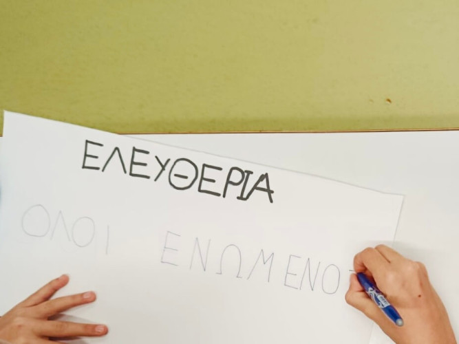 17 Νοεμβρίου 2025Οι μαθητές μας της Στ΄τάξης τιμώντας τους φοιτητές της 17ης Νοέμβρη 1973 δημιούργησαν τα δικά τους πανό γράφοντας πάνω συνθήματα κατά του φασισμού και της δικτατορίας.