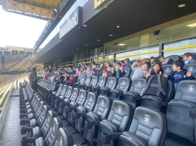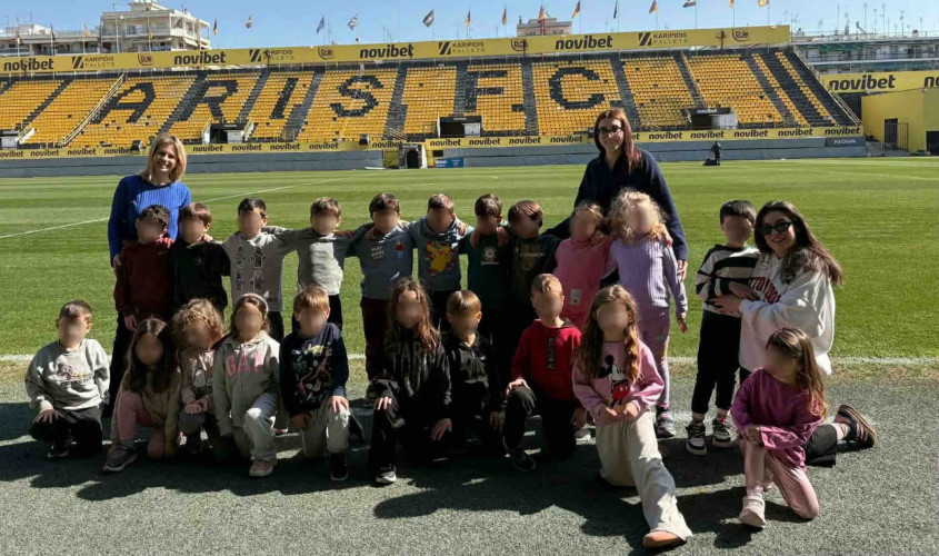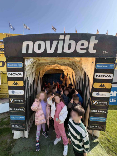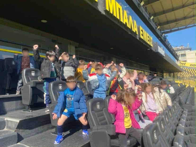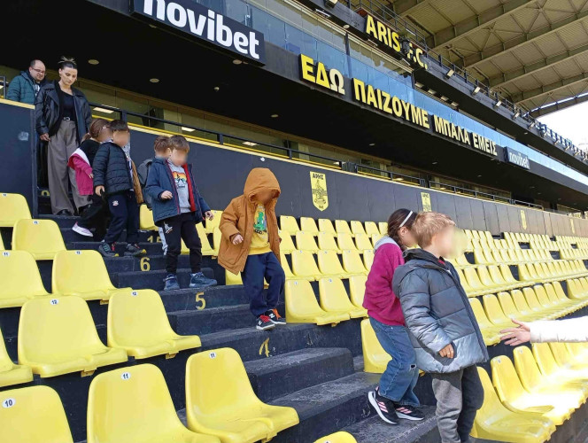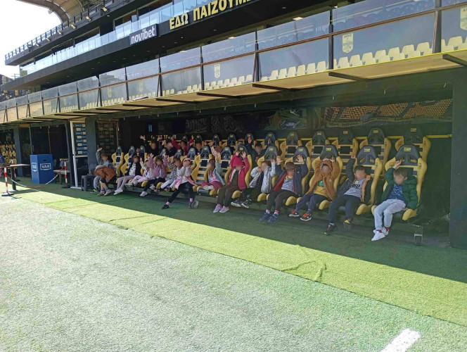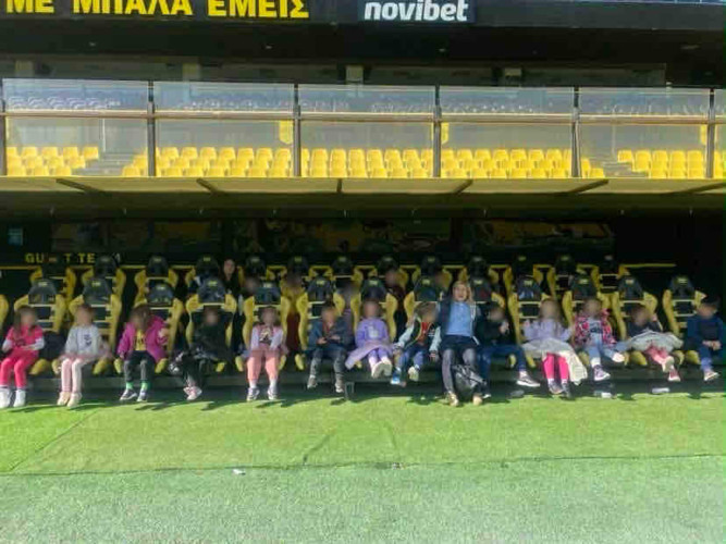 10 Μαρτίου 2026Στο πλαίσιο της θεματικής ενότητας «Μικρά βήματα στη μεγάλη πόλη» τα νηπιάκια μας επισκέφθηκαν το γήπεδο του ΑΡΗ, «Κλεάνθης Βικελίδης» και περιηγήθηκαν στις εγκαταστάσεις του. Εκεί, είχαν την ευκαιρία να έρθουν σε επαφή με τον «κόσμο» του ποδοσφαίρου και να γνωρίσουν βασικές πληροφορίες για το άθλημα. Ξεναγήθηκαν στο γήπεδο, περιπλανήθηκαν στα αποδυτήρια των παικτών και είδαν από κοντά την αίθουσα που παραχωρούν οι προπονητές και οι ποδοσφαιριστές τις συνεντεύξεις Τύπου. Βιωματικά τα παιδιά καλλιέργησαν τις αξίες της συνεργασίας, της ομαδικότητας και της ευγενούς άμιλλας.