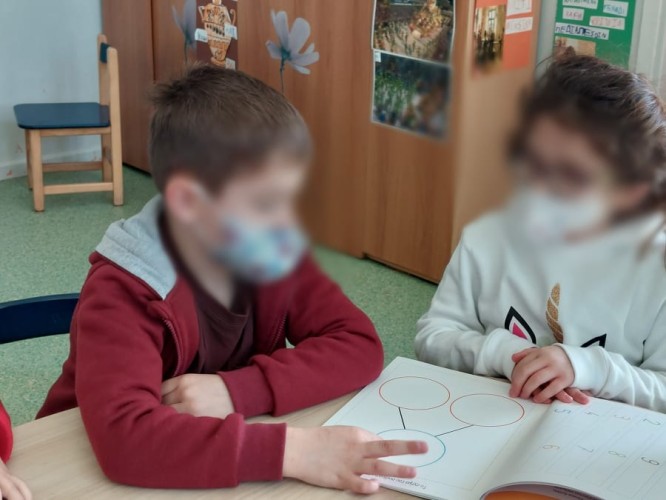 - Έκαναν μαθηματικές πράξεις με τον παραδοσιακό, αλλά και μ’ έναν «φυσικό» τρόπο: Η λιμνοθάλασσα στρώθηκε καταμεσής της τάξης, τα ψαράκια με τους συνδετήρες που είχαν πάνω τους αριθμούς «ρίχτηκαν» στο νερό και το κάθε νηπιάκι πήρε το καλάμι του και ψάρεψε όσα ψαράκια μπορούσε προσθέτοντας τον αριθμό που είχε επάνω το κάθε ψάρι. Μετά, επέστρεφε το ψαράκι στο φυσικό του περιβάλλον.