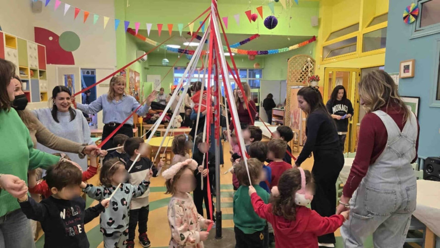 20 Φεβρουαρίου 2026Το τραπέζι στρώθηκε, τα σαρακοστιανά εδέσματα ετοιμάστηκαν και οι μαθητές μας του Νηπιαγωγείου προσκάλεσαν τα μικρά μας του Παιδικού Σταθμού για να γιορτάσουν μαζί τα Κούλουμα. Η Καθαρά Δευτέρα σηματοδοτεί την αρχή της Σαρακοστής και στο Σχολείο μας κρατώντας ζωντανές τις παραδόσεις τηρήσαμε τα έθιμα της ημέρας. Λαγάνα, ελιές, ταραμάς, χαλβάς, φάβα και φυσικά η κλασική φασολάδα ήταν τα πεντανόστιμα φαγητά που απόλαυσαν τα παιδιά. Χόρεψαν ακολουθώντας το ρυθμό της μουσικής και όταν ήρθε η ώρα έμπλεξαν και ξέμπλεξαν το «γαϊτανάκι». Η πιο συναρπαστική στιγμή όμως ήταν όταν μαζευτήκαμε όλοι μαζί για το πέταγμα του χαρταετού. Με λίγη προσπάθεια και πολύ ενθουσιασμό καταφέραμε να τον δούμε να ανεβαίνει ψηλά στον ουρανό.