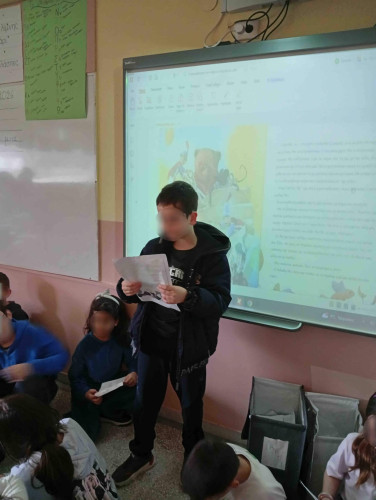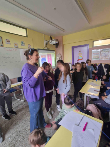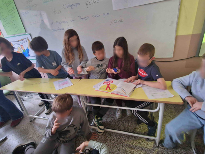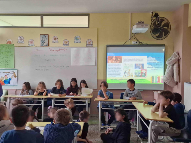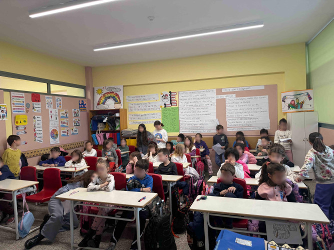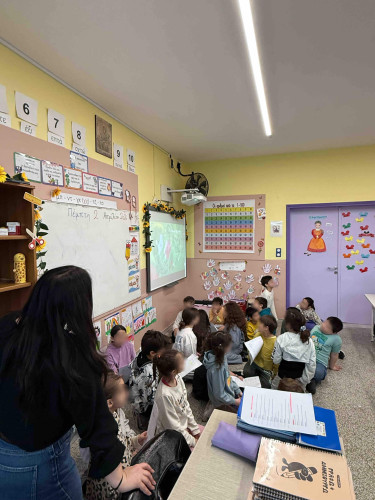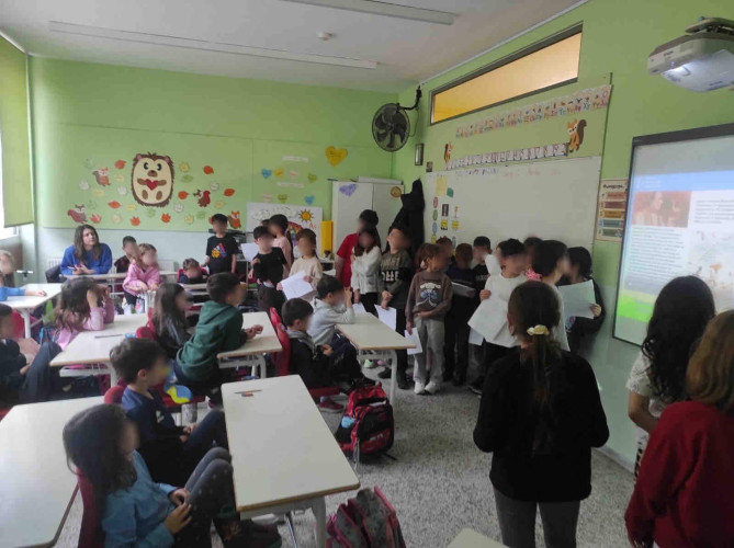 04 Απριλίου 2026Με αφορμή την Παγκόσμια Ημέρα Παιδικού Βιβλίου οι μαθητές μας της Γ΄ τάξης ετοίμασαν μια έκπληξη στους μικρούς συμμαθητές τους της Α΄ τάξης. Χωρισμένα σε ομάδες τα παιδιά επισκέφθηκαν το κάθε τμήμα ξεχωριστά και παρουσίασαν ένα διαφορετικό βιβλίο. Αφού «ταξίδεψαν» με τους πρωταγωνιστές των ιστοριών συζήτησαν για τα συναισθήματα που τους δημιουργήθηκαν και τα πολύτιμα μηνύματα που αποκόμισαν διαβάζοντας τις περιπέτειες των ηρώων. Μετά την υπέροχη παρουσίαση τα παιδιά άφησαν τη φαντασία τους ελεύθερη και μέσα από ζωγραφιές και μικρές φράσεις αποτύπωσαν τι τους εντυπωσίασε περισσότερο. Αυτό που σίγουρα θα θυμούνται είναι πως τα βιβλία είναι ένας θησαυρός ανεκτίμητος που καλλιεργεί το πνεύμα μας και «φανερώνει» τον κόσμο μπροστά στα μάτια μας.