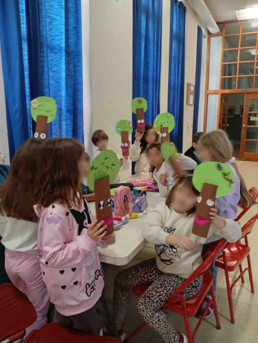 27 Φεβρουαρίου 2026Με μια ιδεοθύελλα, ξεκίνησε η αναζήτησή των μαθητών μας της Α΄ τάξης για το δάσος. Στο πλαίσιο της 3ης θεματικής ενότητας των Εργαστηρίων Δεξιοτήτων «Φροντίζω το Περιβάλλον» με τίτλο «Μια ιστορία για το δάσος που αγαπάμε» συζήτησαν τις λέξεις που τους έρχονται στο μυαλό όταν ακούν τη λέξη «δάσος». Αφού, μίλησαν για τα ζώα, τα πουλιά, τα φυτά και κατανόησαν τι μας προσφέρει. Στη συνέχεια, διάβασαν το παραμύθι «Ταξίδι σε ένα μεγάλο δάσος» των Maša Ogrizek, Slavica Danić που διηγείται τις περιπέτειες τεσσάρων καρπών που ζουν σε μια παιδική χαρά. Με αφορμή λοιπόν τις περιπέτειες των ηρώων, που θέλησαν να γνωρίσουν το δάσος, τα παιδιά προσπάθησαν να εικονογραφήσουν το δικό τους εξώφυλλο για την όμορφη αυτή ιστορία. Μετά τη δημιουργία, ακολούθησε η επίσκεψη στη ΧΑΝΘ όπου παρακολουθήσαν το κουκλοθέατρο με τίτλο «Ο ξυλοκόπος και το δάσος» και έπειτα κατασκεύασαν μοναδικές κούκλες με ανακυκλώσιμα υλικά.