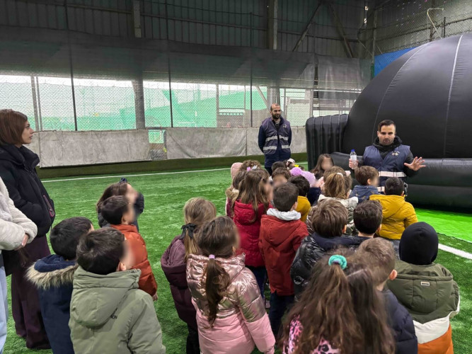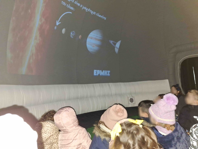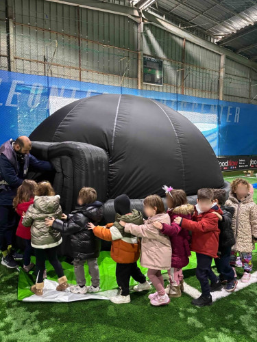 23 Ιανουαρίου 2026Τη Δευτέρα 19 και την Παρασκευή 23 Ιανουαρίου στο πλαίσιο της θεματικής ενότητας «Ο κόσμος πέρα από τη Γη», τα παιδιά συμμετείχαν στο πρόγραμμα «Μικροί αστροναύτες». Μέσα σε ένα κινητό φουσκωτό πλανητάριο, έζησαν μια μοναδική και μαγική εμπειρία, παρακολουθώντας σε τρισδιάστατη προβολή το ηλιακό μας σύστημα. Έμαθαν χρήσιμες πληροφορίες για τους πλανήτες, τη θέση της Γης, την ιστορία του διαστήματος, καθώς και για τη ζωή και την καθημερινότητα των αστροναυτών. Επιπλέον, συμμετείχαν σε μια διαστημική διαδρομή με διαδοχικά εμπόδια, που έκανε την εμπειρία ακόμη πιο διασκεδαστική