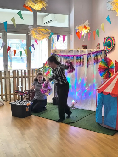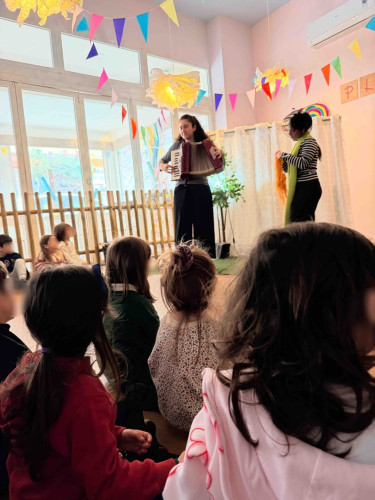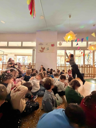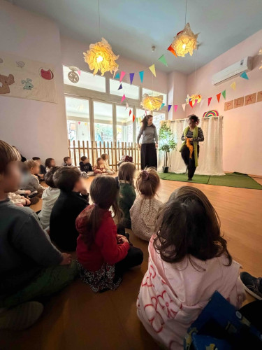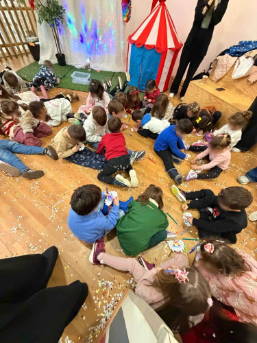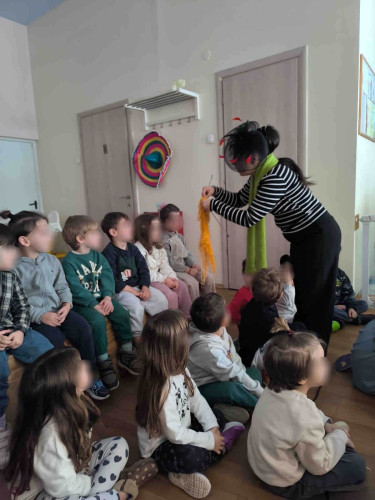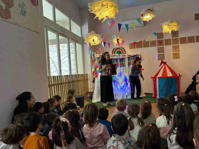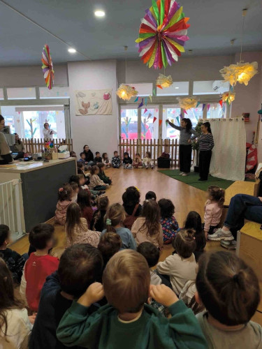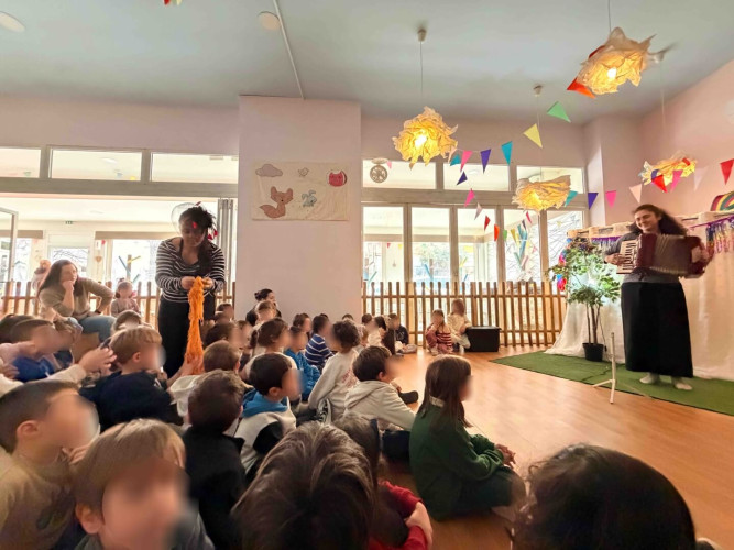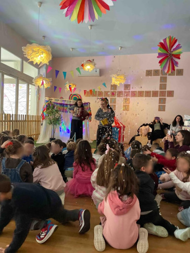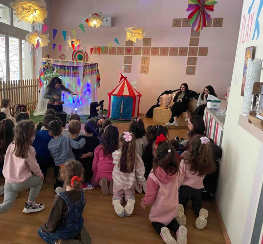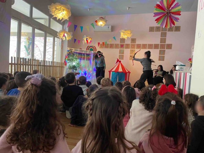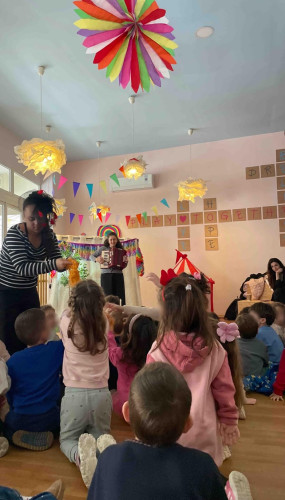 10 Φεβρουαρίου 2026Την Παρασκευή 10 Φεβρουαρίου τα προνηπιάκια μας επισκέφθηκαν τον πολυχώρο “Play Together” και παρακολούθησαν τη δραματοποιημένη παράσταση του παραμυθιού «Το γαϊτανάκι» από την ομάδα “The little foxes”. Η Tula, μια μικρή αραχνούλα είναι η πρωταγωνίστρια της ιστορίας, η οποία ζει σε ένα δέντρο στο κέντρο της πόλης και ξεχωρίζει για την ικανότητά της να υφαίνει ιστούς. Όταν ένα τσίρκο ετοιμάζει μια αποκριάτικη γιορτή και διαπιστώνει ότι λείπει το γαϊτανάκι, ήρθε η ώρα που εκείνη αναλαμβάνει δράση. Μέσα από το χαρούμενο αποκριάτικο κλίμα, τα παιδιά ήρθαν σε επαφή με αξίες όπως η προσφορά, η συνεργασία και η χαρά της συμμετοχής. Ακόμα, πήραν μέρος στο θεατρικό με πολύ διασκεδαστικό τρόπο. Ο καθένας ζωγράφισε τη δική του αποκριάτικη μάσκα με χρώματα της επιλογής του και φεύγοντας την πήραν μαζί τους ως αναμνηστικό.