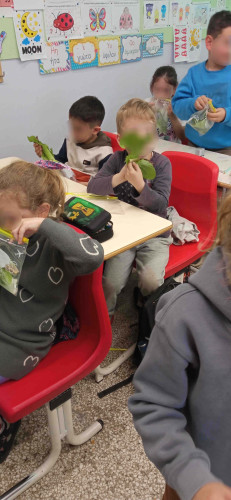 20 Μαρτίου 2026Η άνοιξη ήρθε και οι μαθητές μας της Α΄ τάξης αποφάσισαν να γεμίσουν με χρώματα και αρώματα το Σχολείο μας την Παρασκευή 20 Μαρτίου. Τα μαρουλάκια που φύτεψαν πριν καιρό, τα φρόντιζαν καθημερινά, μεγάλωσαν και έφτασε η στιγμή της συγκομιδής. Οι δασκάλες με χαρά μοίρασαν τα 4 διαφορετικά είδη μαρουλιών στα παιδιά ώστε να τα πλύνουν και να τα απολαύσουν στη σαλάτα τους. Σκοπός του Σχολείου μας είναι να μυήσουμε τους μαθητές μας σε έναν υγιεινό τρόπο ζωής με αγάπη για τη φύση.