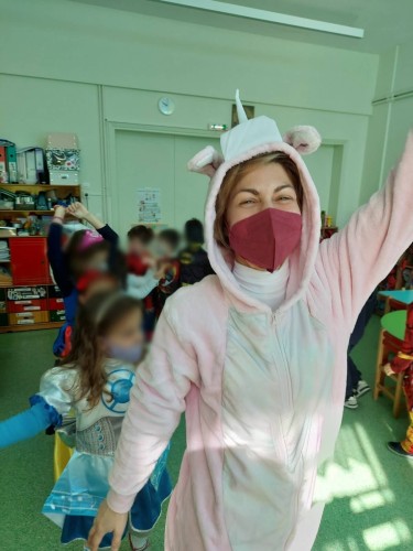 25 Φεβρουαρίου 2022Η αυλή του Σχολείου μας μύρισε τσίκνα από τα σουβλάκια που ψήσαμε, ενώ παιδικές φωνούλες και αποκριάτικα τραγούδια γέμισαν τον χώρο! Ήταν η γιορτή του Νηπιαγωγείο μας και τα μικρά μας με τις δασκάλες τους που μας έκαναν να χαμογελάσουμε και έδωσαν τον αποκριάτικο ρυθμό. Τα παιδιά μας χόρεψαν στις τάξεις τους και ύστερα, ανά τμήμα βγήκαν στην αυλή μας, όπου είχαν στηθεί ψησταριές από νωρίς το πρωί. Και επειδή η μυρωδιά πήγε και στο Δημοτικό μας, και όλοι οι μαθητές μας του Δημοτικού κεράστηκαν σε ατομική συσκευασία από ένα σουβλάκι για το καλό! Τα μικρά μας στην αυλή έπαιξαν λίμπο και φυσικά, πιστά στα έθιμά μας γύρισαν το γαϊτανάκι. Και επειδή η χαρά και η αγάπη πρέπει να μοιράζονται, έφτιαξαν με τις νηπιαγωγούς τους ένα πανό με το οποίο εύχονται χαρά και αγάπη για όλα τα παιδάκια του κόσμου!